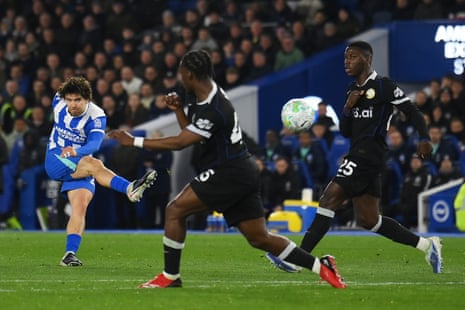 Джек Хиншелвуд забивает мяч точно и удвоит преимущество «Брайтона» над «Челси».